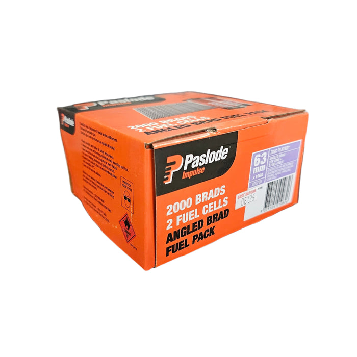 63mm Angled Brad Nails – Zinc Plated with Gas Fuel Cell – 2000 Pack – for Trim & Finishing