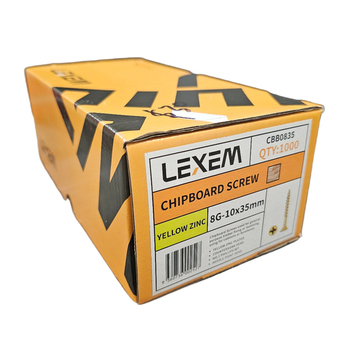 Strong and versatile 8G x 35mm zinc plated chipboard screws for fastening particleboard, MDF and softwoods. The countersunk bugle head creates a flush finish for laminates and veneers, while a sharp point and deep coarse thread provide fast driving and superior holding strength. PH2 recess fits standard bits for reliable, low‑slip driving. A great length for thicker materials and bracket fixing. Supplied in a box of 100 for smaller installations, repairs and site fit‑offs.