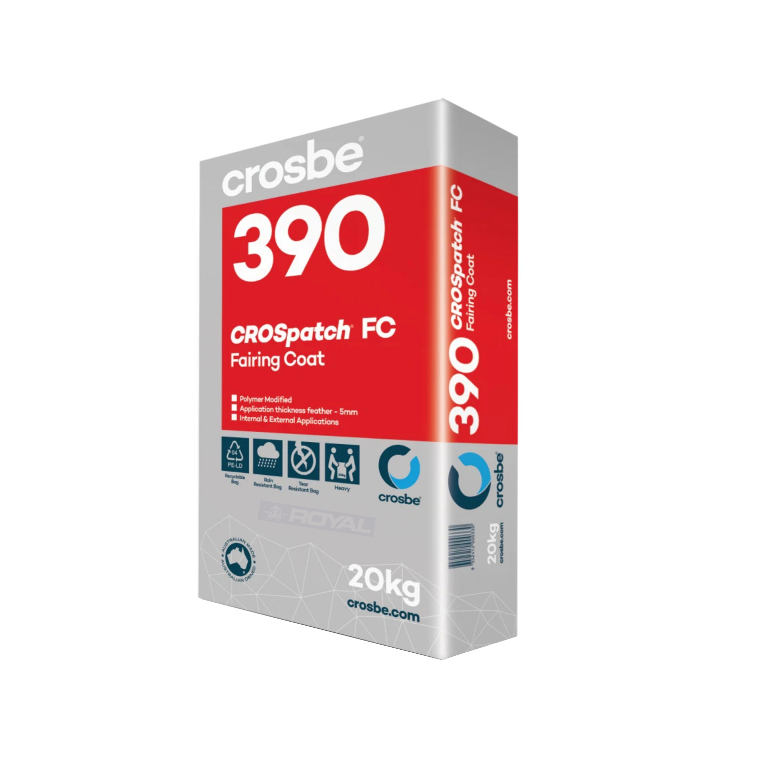 CROSpatch 390 is a polymer modified fairing coat supplied in 20kg bags for smoothing and refining concrete and masonry surfaces. It fills blowholes, minor imperfections, and surface blemishes to create a uniform finish prior to coatings or membranes. With excellent workability and adhesion, it can be applied thinly over large areas, making it ideal for façade refurbishment and repair projects.