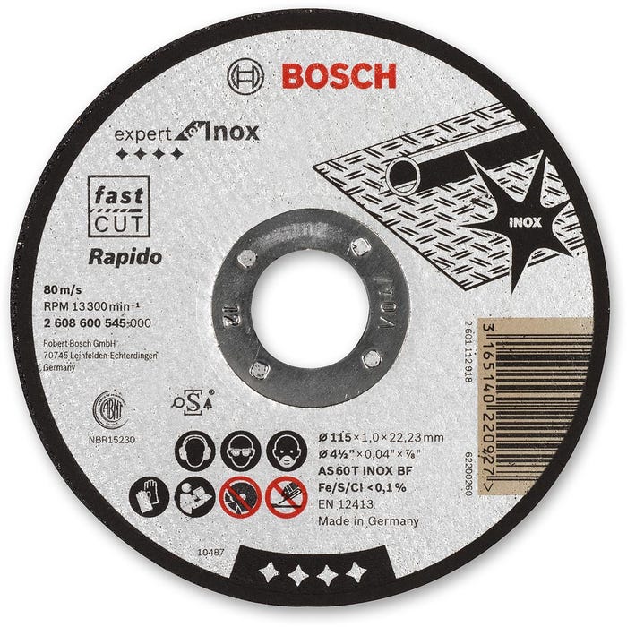 Specialised Inox cutting disc formulated for stainless steel and thin metals. Free from iron, sulphur, and chlorine to help prevent corrosion and staining on stainless workpieces. Delivers cool, clean cutting with minimal burr and discolouration. Suitable for fabrication, installation, and maintenance where material integrity is critical. For use with compatible angle grinders.