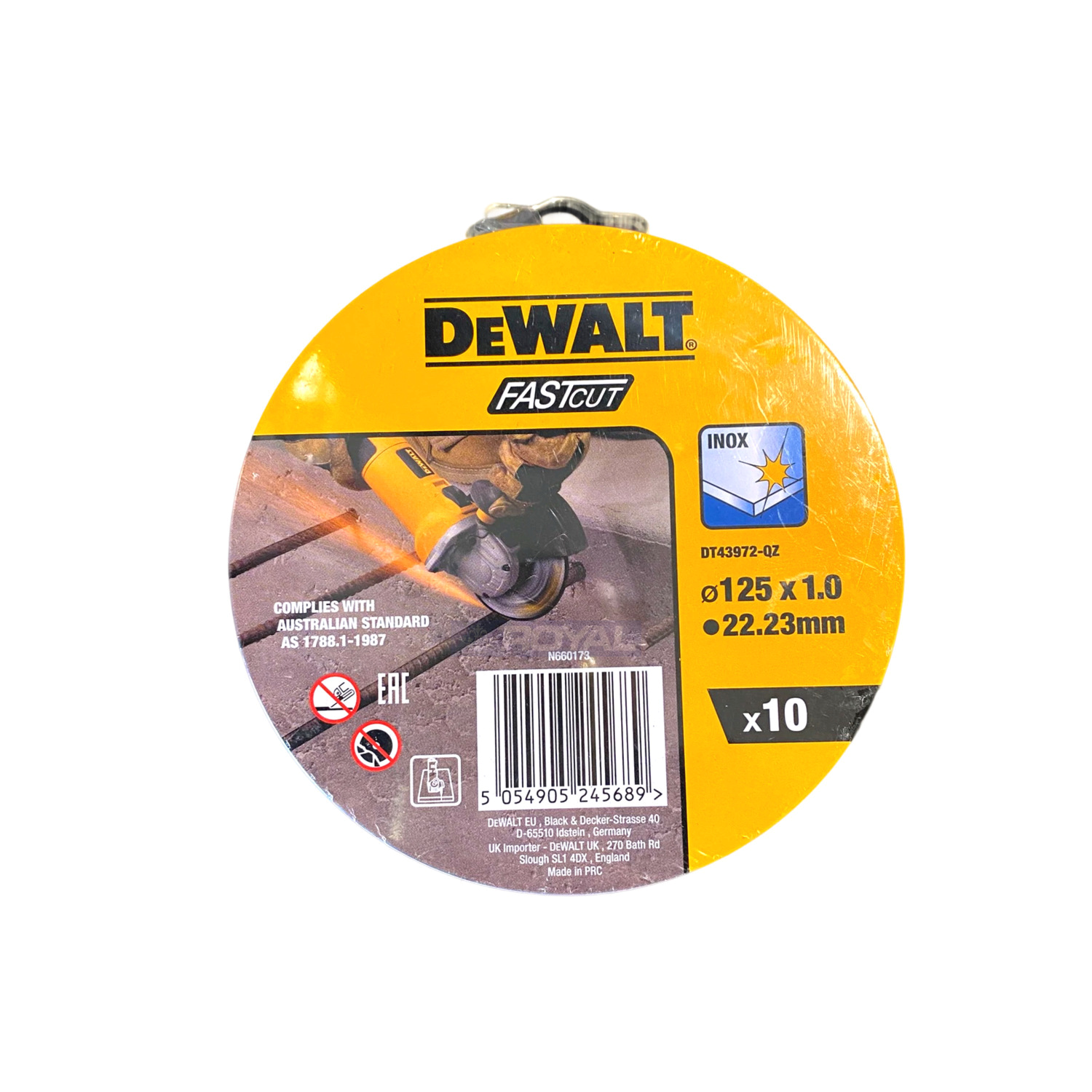High-performance DeWalt FASTCUT 1.0mm cutting discs deliver quick, precise cuts with minimal burr in stainless and mild steel. Thin kerf reduces heat and effort, improving cut quality and productivity. Reinforced for safety and straight tracking. Pack of 10 supports continuous work with fewer changeovers. Ideal for sheet, tube and light profiles using 125mm angle grinders. Observe correct RPM, use a guard and PPE, and avoid excessive side loading.