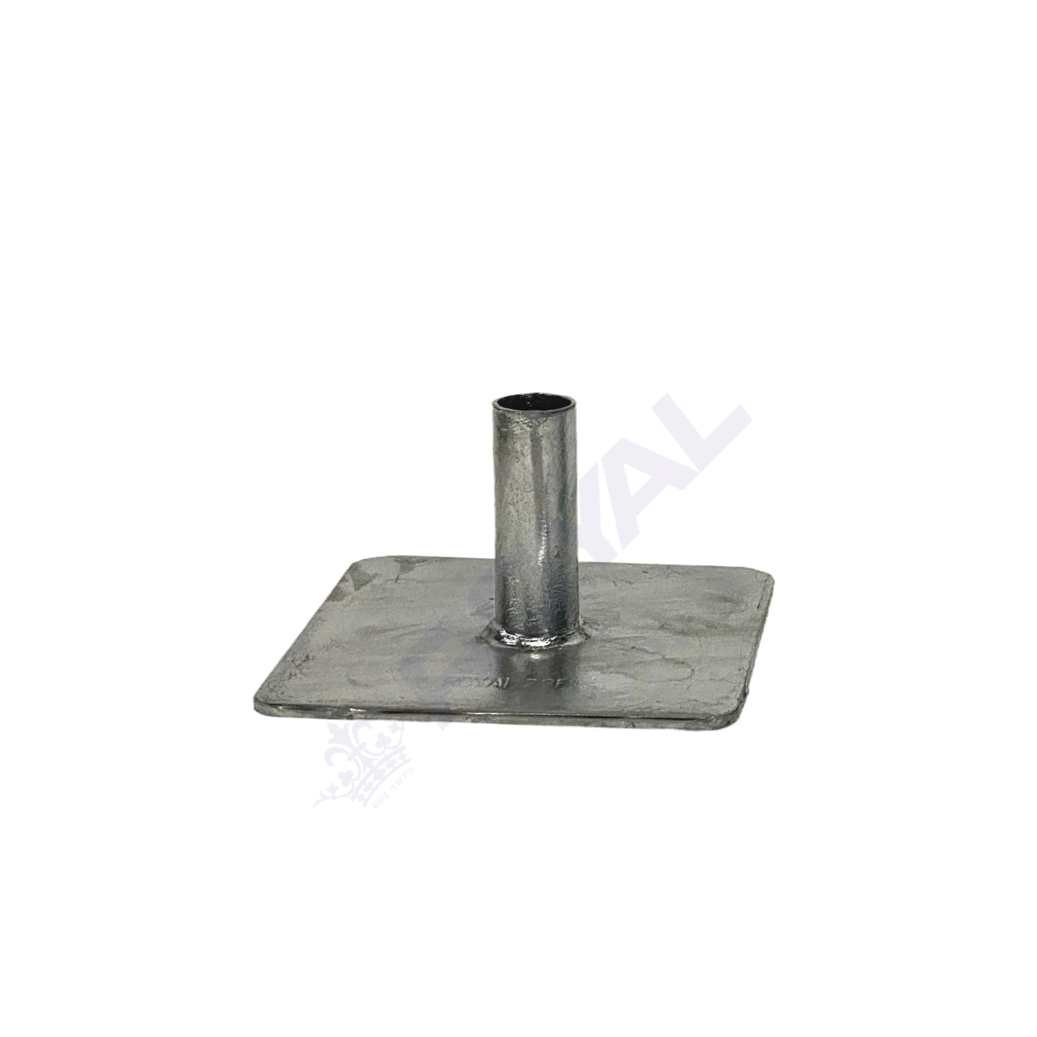 Heavy duty base plate with spigot for shoring frames and formwork towers. The wide plate distributes load on concrete or compacted ground, while the spigot provides positive location into frames or standards. Designed for stability, easy assembly, and reliable load transfer under site conditions. Ideal for propping stacks, access towers, and modular shoring systems across civil, commercial, and residential projects.