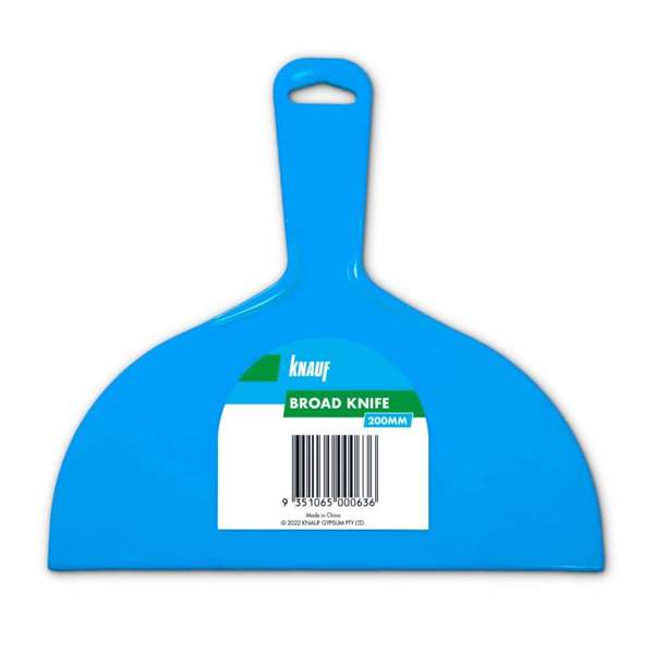 Knauf 200mm DIY Broadknife delivers wider coverage for efficient skimming and blending of joint compounds. Stainless steel blade resists corrosion and maintains a true edge. Comfortable handle aids control on large areas. Use for feathering butt joints, smoothing patches and final passes before sanding.
