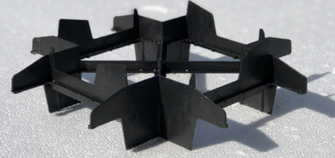 Robust plastic 4‑way spacer for interlocking waffle pods at grid intersections, keeping spacing accurate in all directions. Simplifies layout, improves stability, and minimises movement during reinforcement placement and concrete pour. Reusable and easy to handle, it integrates seamlessly with standard EPS pod systems. An essential accessory for fast, precise raft slab setups delivering consistent slab geometry.